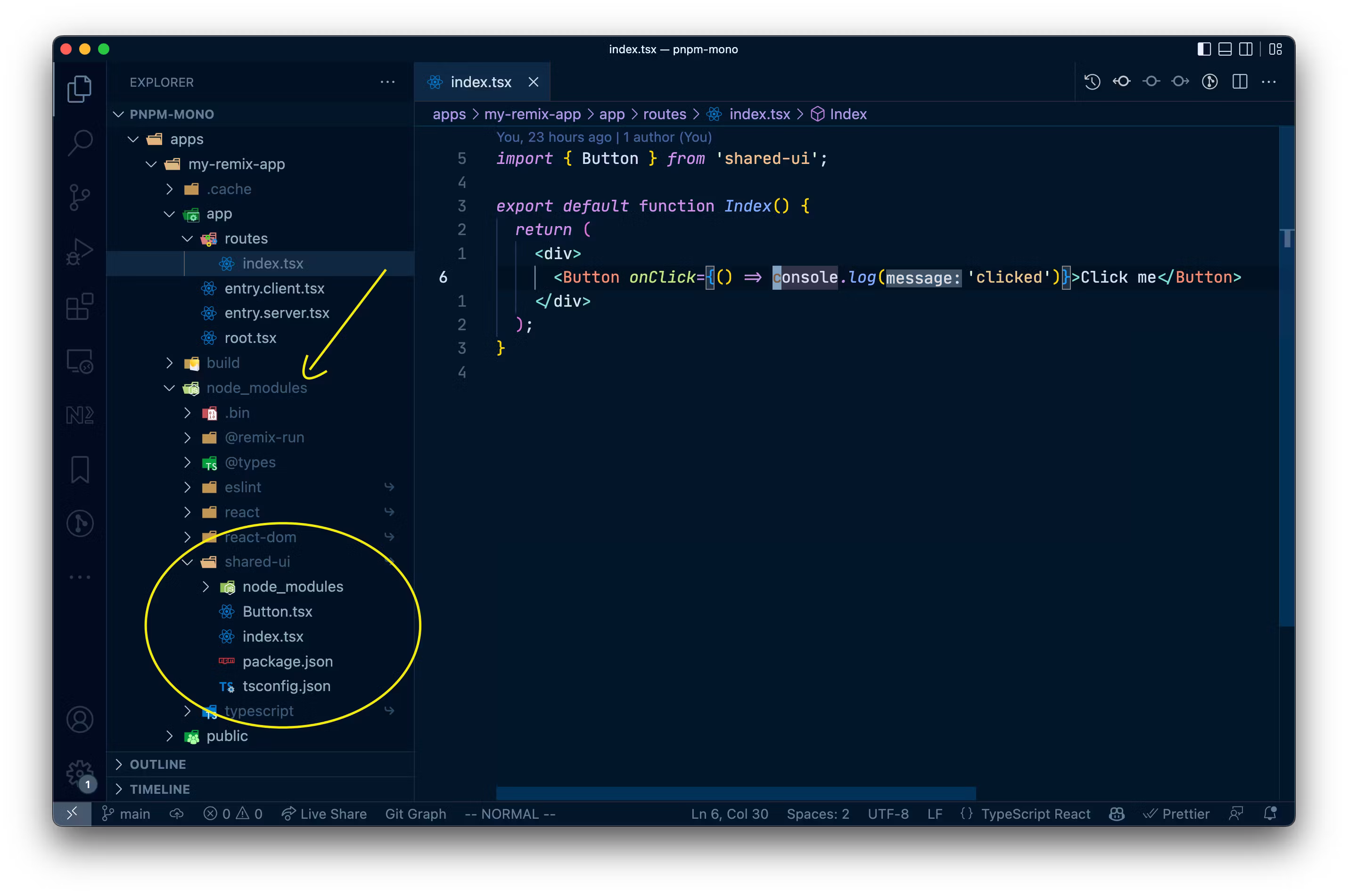 property defined which PNPM wants to run the package. So let's define one in the apps/my-remix-app/package.json